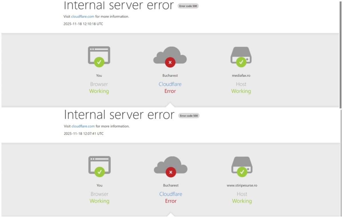 Site-urile Mediafax, Antena3, G4Media, Libertatea și altele au căzut temporar. Probleme la nivel global pentru Cloudflare