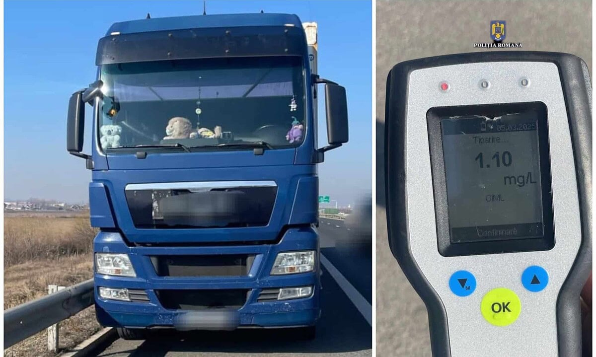 Șofer de camion prins băut pe autostrada A1, în zona Sebe: Un bărbat de 47 de ani, din localitatea Ghioroc, județul Arad, a fost prins conducând sub influența alcoolului pe autostrada A1, la kilometrul 307.