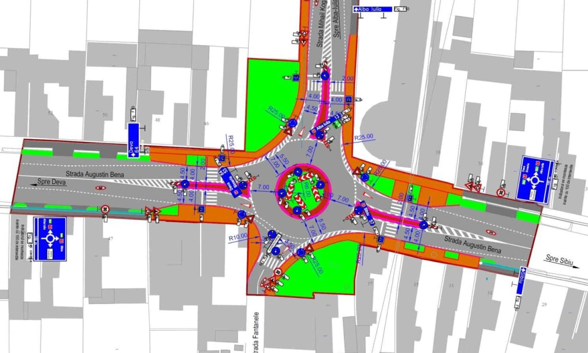Un nou sens giratoriu urmează să fie amenajat la Sebeș, la intersecția dintre străzile Augustin Bena și Mihail Kogălniceanu.