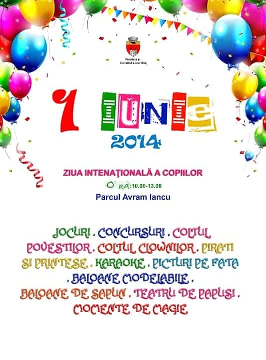 Copiii sunt așteptați în Parcul “Avram Iancu” duminică, începând cu ora 10.00. Cei mici vor putea participa la ateliere de creație, jocuri dinamice, probe de forță și îndemânare, concursuri, iar atmosfera va fi întregită de clovni și modelatori de baloane.