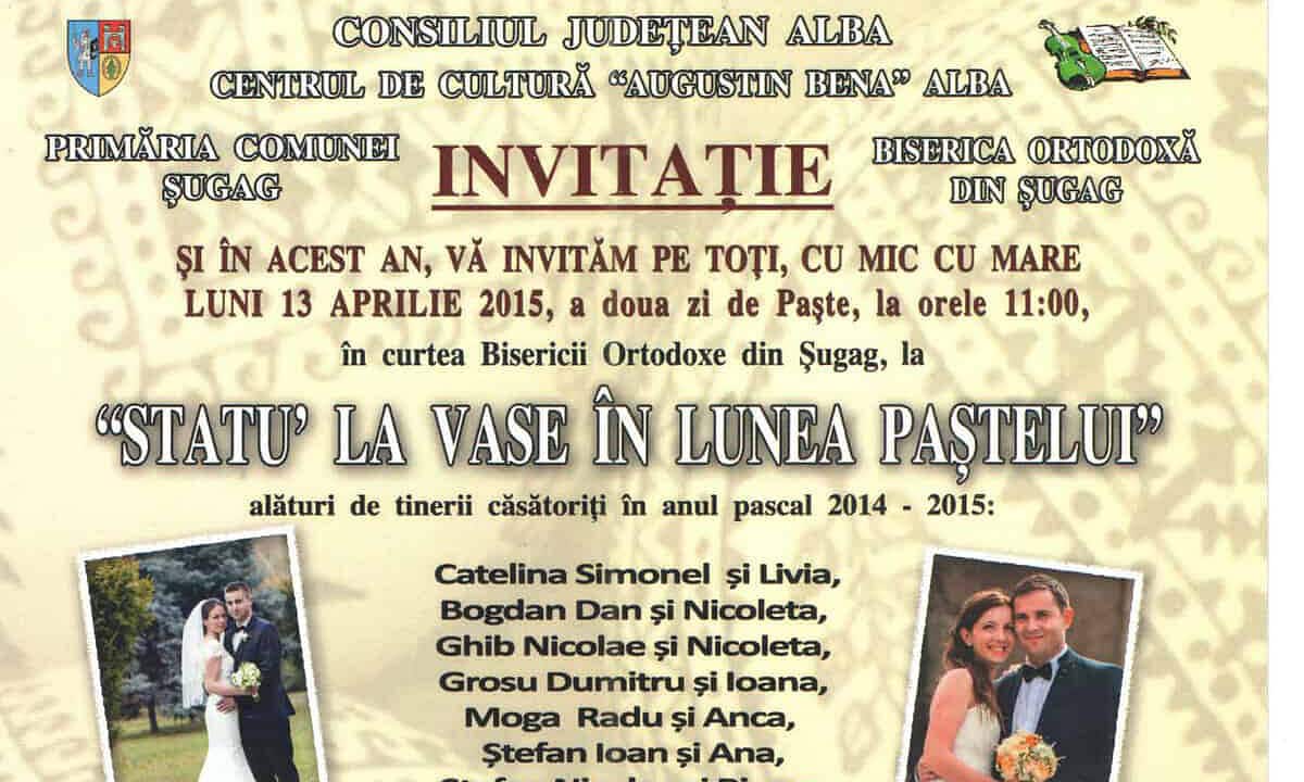 „Statu la vase”, obiceiul UNIC ÎN ȚARĂ care are loc în lunea Paştelui la Şugag. Tinerii căsătoriţi în ultimul an primesc cadouri. PROGRAMUL