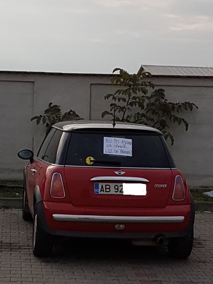 Parcările „inspirate” sunt la ordinea zilei la Alba Iulia. Se pare că o persoană sătulă de astfel de parcări s-a decis să lipească pe o mașină parcată de 2 locuri, un mesaj pentru șofer „ Nu îți ajunge un singur loc de parcare”, este întrebarea lăsată pe autoturism.