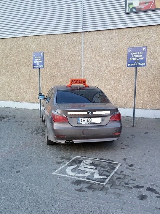 Primul caz sesizat este un instructor al unei școli de șoferi care se pare că a cam uitat regulile de circulație pe care le predă la cursanții săi. Acesta a fost surprins cum mașina lăsat în parcarea unui hipermarket pe locul destinat persoanelor cu handicap, asta în condițiile în care se vede din imagine că existau și alte locuri unde să își lase bolidul.