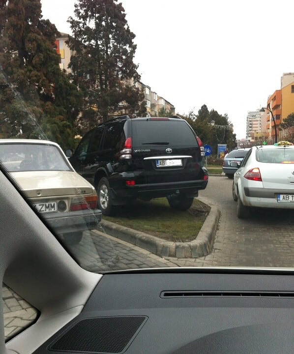 ŞTIREA TA pe ALBA24 | Parcare ”de la munte” pe Bulevardul Transilvaniei din Alba Iulia: Cu jeep-ul "proptit" pe spaţiul verde