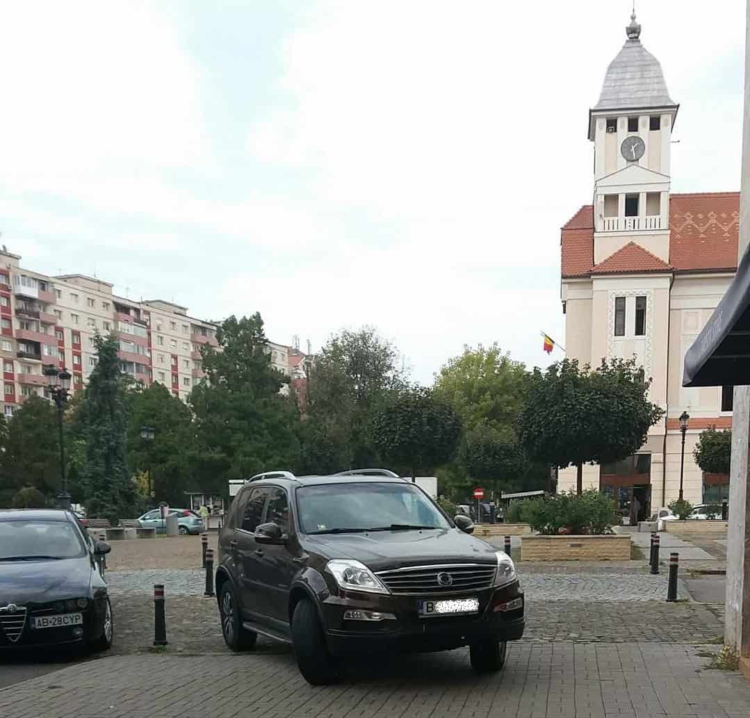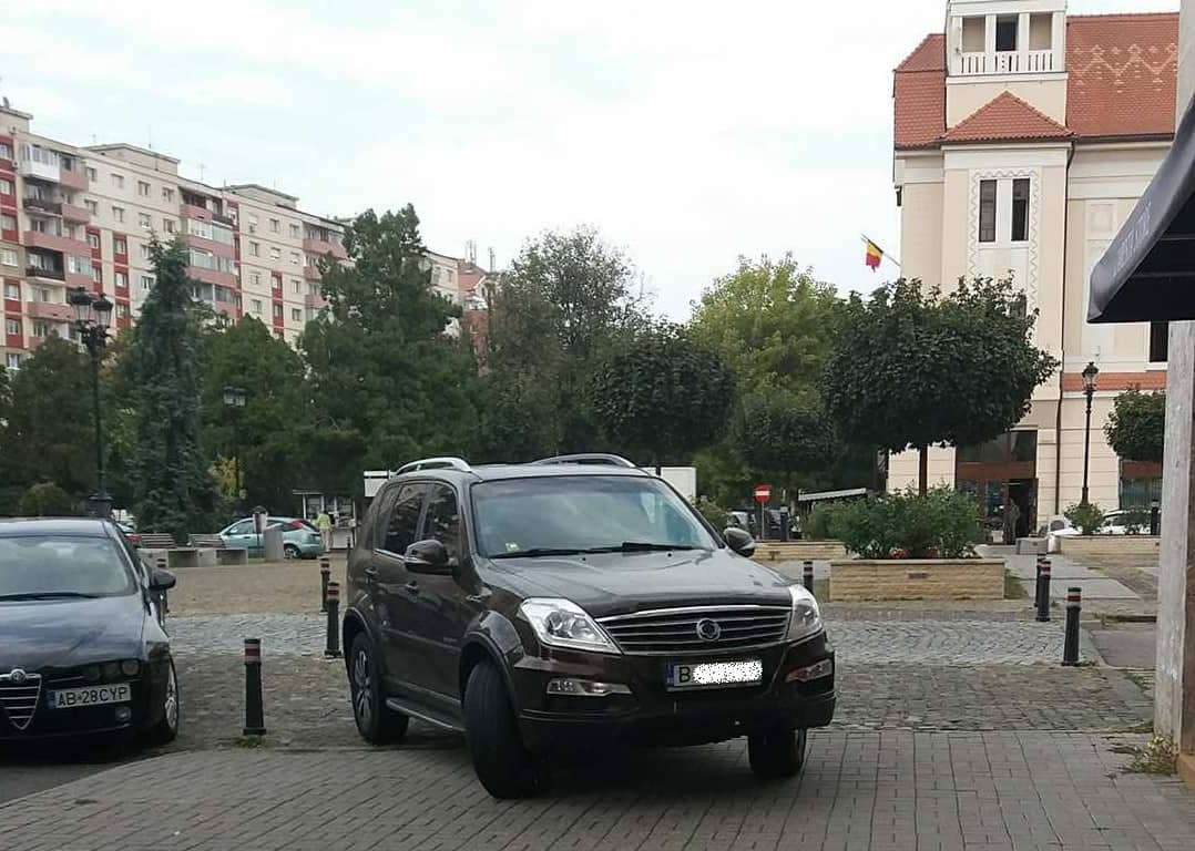 ȘTIREA TA pe Alba24: Parcare „inspirată”, la Alba Iulia. Cu jeep-ul pe trotuar, în centrul municipiului