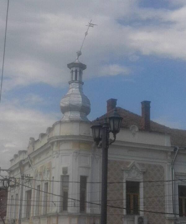 ȘTIREA TA pe Alba24: Pericol pentru trecători, la Aiud. Un ornament de pe acoperișul unui imobil, la doi paşi să cadă pe carosabil