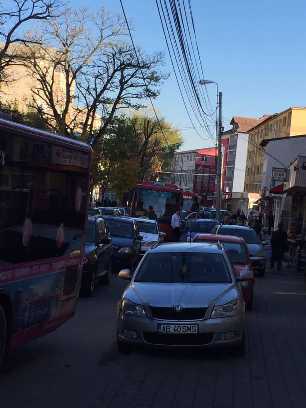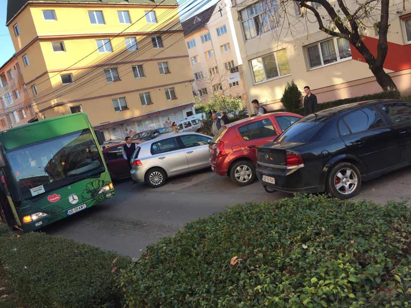 Circulația pe strada Vasile Goldiș din Alba Iulia a fost blocată din cauza unui șofer care și-a lăsat mașina parcată în drum. Autoturismul ocupa aproape jumătate din stradă, iar din această cauză autobuzele nu au mai putut trece și au blocat drumul.