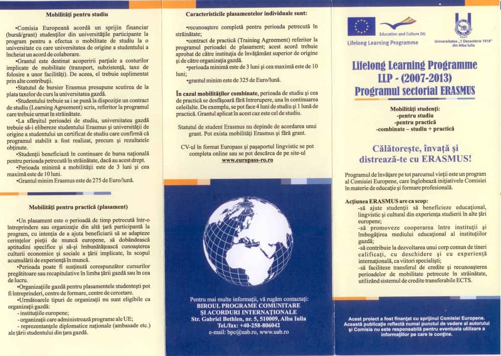 Bursele sunt oferite în cadrul programului LLP (Lifelong Learning Programme) 2014-2020 - programul sectorial Erasmus.