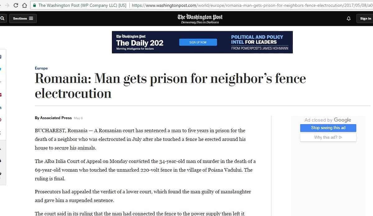 Suntem ”mondiali”: Cazul bărbatului din Alba care și-a montat un gard electric, electrocutându-și mortal vecina a ajuns și în The Washington Post