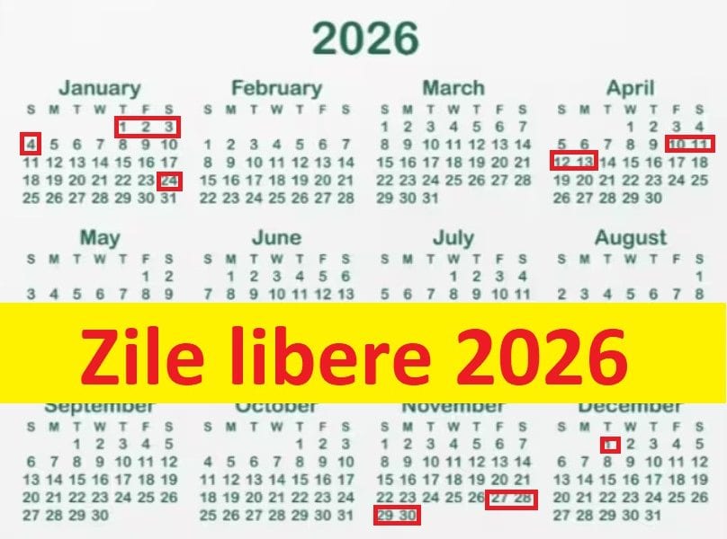 Zile libere legale în 2026: Anul 2026 aduce 16 zile libere legale pentru angajații din România cu una mai puțin decât în 2025. Diferența apare deoarece,...