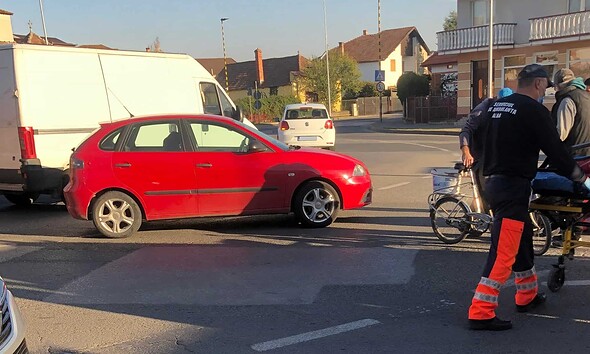 FOTO: Accident la Alba Iulia. Un bărbat care circula pe bicicletă, rănit după ce a fost acroșat de o mașină