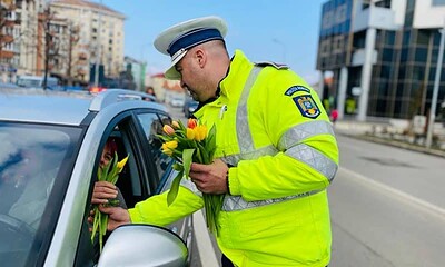 FOTO: Polițiștii rutieri din Alba Iulia au împărțit flori și urări de bine șoferițelor, cu ocazia zilei de 8 Martie