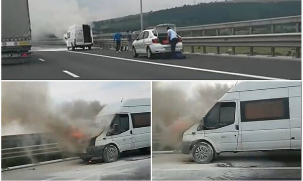 O autoutilitară a fost cuprinsă de flăcări pe autostrada A1, sensul Sebeș - Sibiu, înainte de Săliștea. Incendiul s-a petrecut marți, în jurul orei 12.15. Din video-ul postat de un...