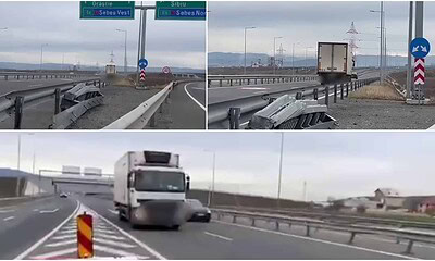 Șoferul unui camion a fost filmat vineri în timp ce dădea cu spatele pe breteaua...
