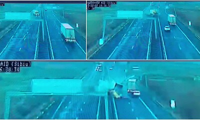 Momentul impactului în accidentul mortal produs joi după-amiaza pe Autostrada A1 Sibiu - Sebeș, în...