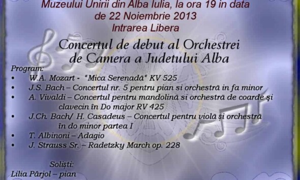 Vineri, 22 noiembrie, albaiulienii sunt așteptați la concertul – expoziție intitulat „Între două lumi”. În cadrul evenimetului, Orchestra de Cameră a județului Alba va susține concertul de debut, iar artistul...