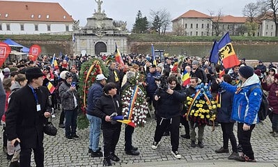 Huiduieli marca AUR, la Alba Iulia: Momentul solemn al depunerii de coroane de la Alba...