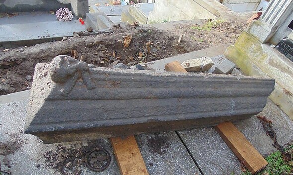 Descoperire surprinzătoare în cimitirul din Aiud. Muncitorii care săpau o groapă au descoperit o piatră funerară, o lespede, care pune multe semne de întrebare. Este una atipică datorită motivului ornamental...