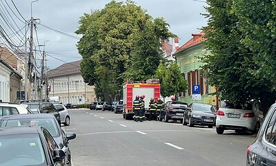 Un stâlp de electricitate a luat foc pe o stradă din Alba Iulia, fiind alertați...