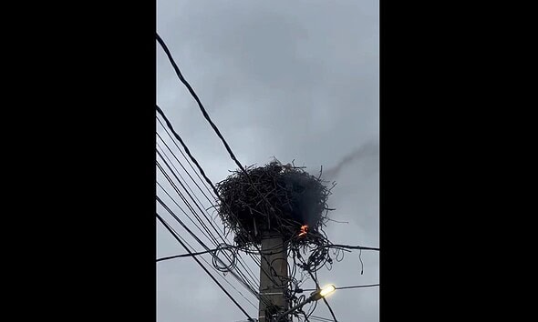 VIDEO: Un cuib de berze a luat foc pe un stâlp de curent, la Galda de Jos. Intervin pompierii din Alba Iulia