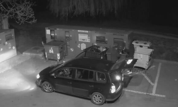 VIDEO: Doi bărbați, amendați de polițiștii locali din Aiud. Au vărsat un butoi plin cu lichid într-o pubelă de gunoi din oraș