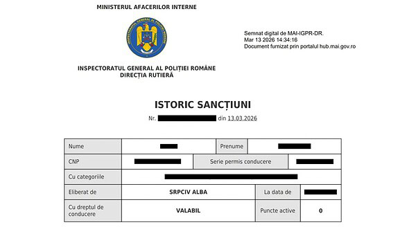 Șoferii pot verifica online, în mai puțin de un minut, situația punctelor de penalizare, sancțiunile și dacă au sau nu permisul suspendat. Potrivit IPJ Alba, polițiștii Serviciului Rutier Alba informează...