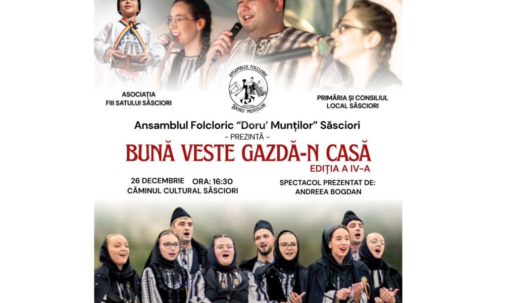 Ansamblul Folcloric „Doru’ Munților” din Săsciori organizează vineri, 26 decembrie, spectacolul „Bună veste gazdă-n casă!” care marchează 3 ani de activitate a ansamblului. Spectacolul se va...