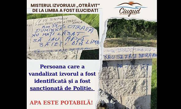 Izvorul de la Limba, vandalizat cu mesaje amenințătoare: "Am pus otravă". Făptașul a fost prins și sancționat de polițiști