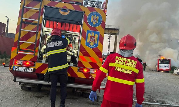 Foto: Autobuz în flăcări în zona gării din Alba Iulia. Detașamentul de pompieri Alba Iulia intervine duminică seară pentru stingerea unui incendiu izbucnit pe strada Iașilor, în apropierea gării. Incendiul...