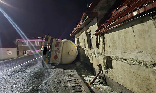 VIDEO: Autocisternă cu gaz butan, răsturnată pe DN1 Sibiu-Brașov, la Scoreiu. Locuitori evacuați, trafic blocat