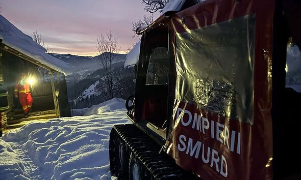 VIDEO: ISU Alba, intervenție cu autoșenilata pentru transportul unui pacient, dintr-o zonă izolată de zăpadă din Munții Apuseni