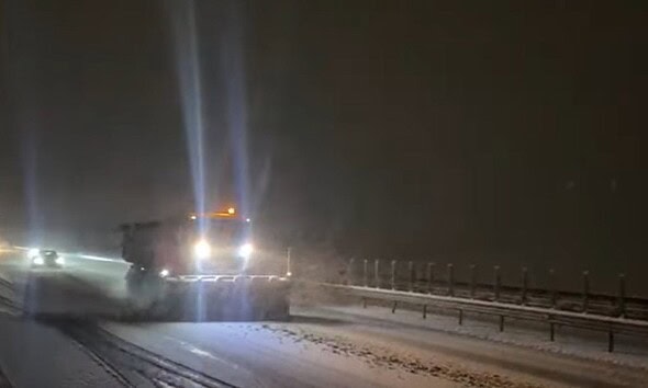 VIDEO ATENȚIE ȘOFERI: Se circulă în condiții de iarnă pe autostrada A10 Sebeș-Turda. Drumarii intervin pentru deszăpezire