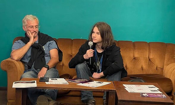 Actorul Richard Balint din Cugir, alături de ”Fiul” Robert, la Festivalul de Teatru Povești de la Alba Iulia