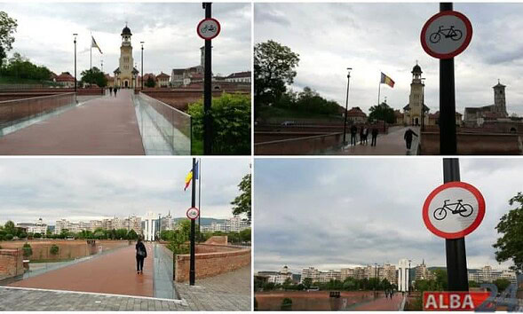 Accesul bicicletelor pe podul de sticlă, metal și lemn tehnic din Cetatea Alba Carolina a fost interzis. Pe doi dintre sâlpii de iluminat aflați la capetele acestuia au fost montate...