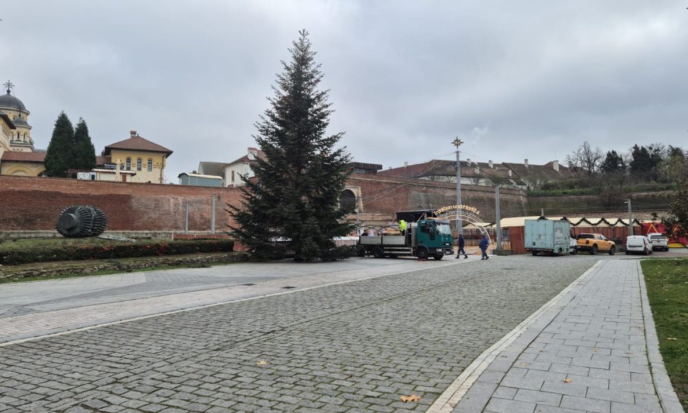 VIDEO: Bradul de Crăciun a ajuns în Șanțurile Cetății Alba Carolina, în zona târgului de iarnă