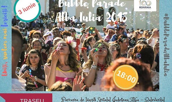 Duminică, 3 iunie, sunteți invitați la Alba Iulia, la cea de-a II-a ediție a paradei neconvenționale a baloanelor de săpun „Bubble Parade”. „Vino îmbrăcat în culorile drapelului național: albastru, galben...