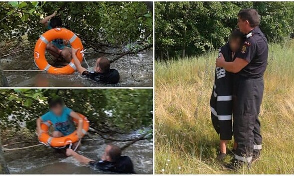 FOTO Fetiță de 13 ani, în pericol să cadă în râul Sebeș, salvată de pompierii de la ISU Alba. Intervenție contra cronometru