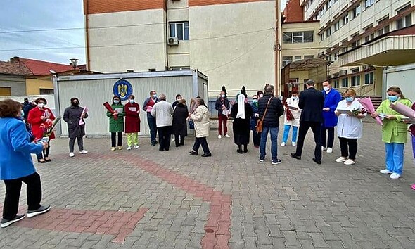 FOTO: Reprezentanții unei asociații greco-catolice din Blaj au oferit flori cadrelor medicale implicate în lupta anti-COVID