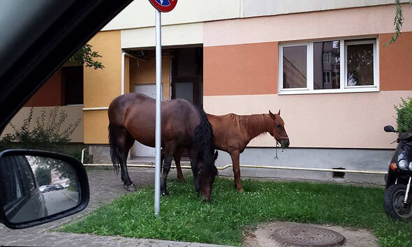 Locuitorii dintr-un bloc din Alba Iulia au avut musafiri nepoftiţi, pe gazonul din faţa imobilului. Trei cai lăsaţi liberi au ales iarba "mai verde" de pe spaţiul public. Un cititor...