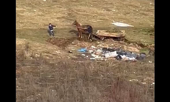 VIDEO: Cal bătut cu lopata, la Alba Iulia. Polițiștii i-au făcut proprietarului dosar penal pentru schingiuirea animalelor