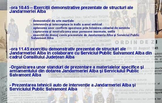Jandarmii din Alba Iulia pregătesc evenimente spectaculoase la Alba Iulia, pentru a marca aniversarea a 165 de ani de la înfiinţarea instituţiei la nivel naţional. Demonstraţie de arte marţiale, intervenţii...