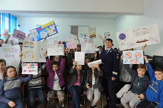 FOTO - Campania naţională „Copilărie fără delincvenţă” la Alba Iulia: 18 elevi din clasele V-VII de la Liceul Sportiv, premiaţi pentru cel mai original mesaj antiviolenţă