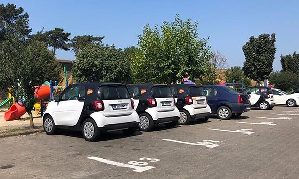 FOTO: Cinci maşini Smart disponibile GRATUIT pentru plimbări scurte prin oraş. Se lansează sistemul car sharing la Alba Iulia.