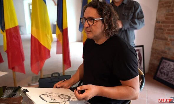 VIDEO: Cum se naște o caricatură din mâna artistului Adrian Bighei, la Alba Iulia. Despre viața, desene, bani și nunțile românilor