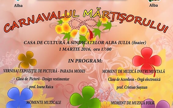 MARȚI: „Carnavalul mărțișorului” la Casa de Cultură a Sindicatelor din Alba Iulia. Expoziție de pictură, momente muzicale și dansuri populare