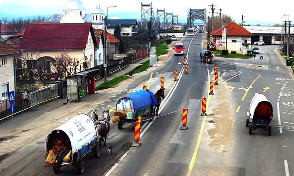 FOTO: O parte dintre căruțele campate în zona zona șoselei de centură din Alba Iulia au părăsit orașul, miercuri dimineață