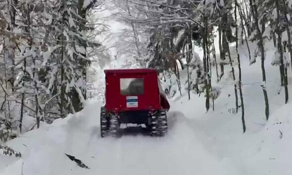 VIDEO Misiune de salvare, într-un cătun din Apuseni. Pompierii intervin cu o autoșenilată, pentru salvarea unei persoane în vârstă