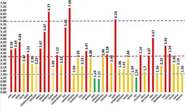 GRAFIC: Care sunt județele cu incidența cea mai mare a cazurilor COVID. ALBA, pe locul 13. Date oficiale din 15 decembrie