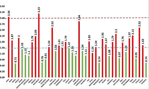 Incidența pe județe a cazurilor COVID. ALBA are 3,67, în creștere. Situația din 24 octombrie