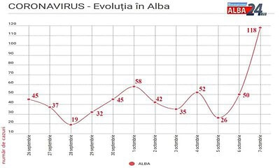 Au fost confirmate 118 cazuri noi de COVID-19 în județul Alba, în ultimele 24 de ore, potrivit datelor transmise miercuri, 7 octombrie, de către Direcția de Sănătate Publică. În total,...